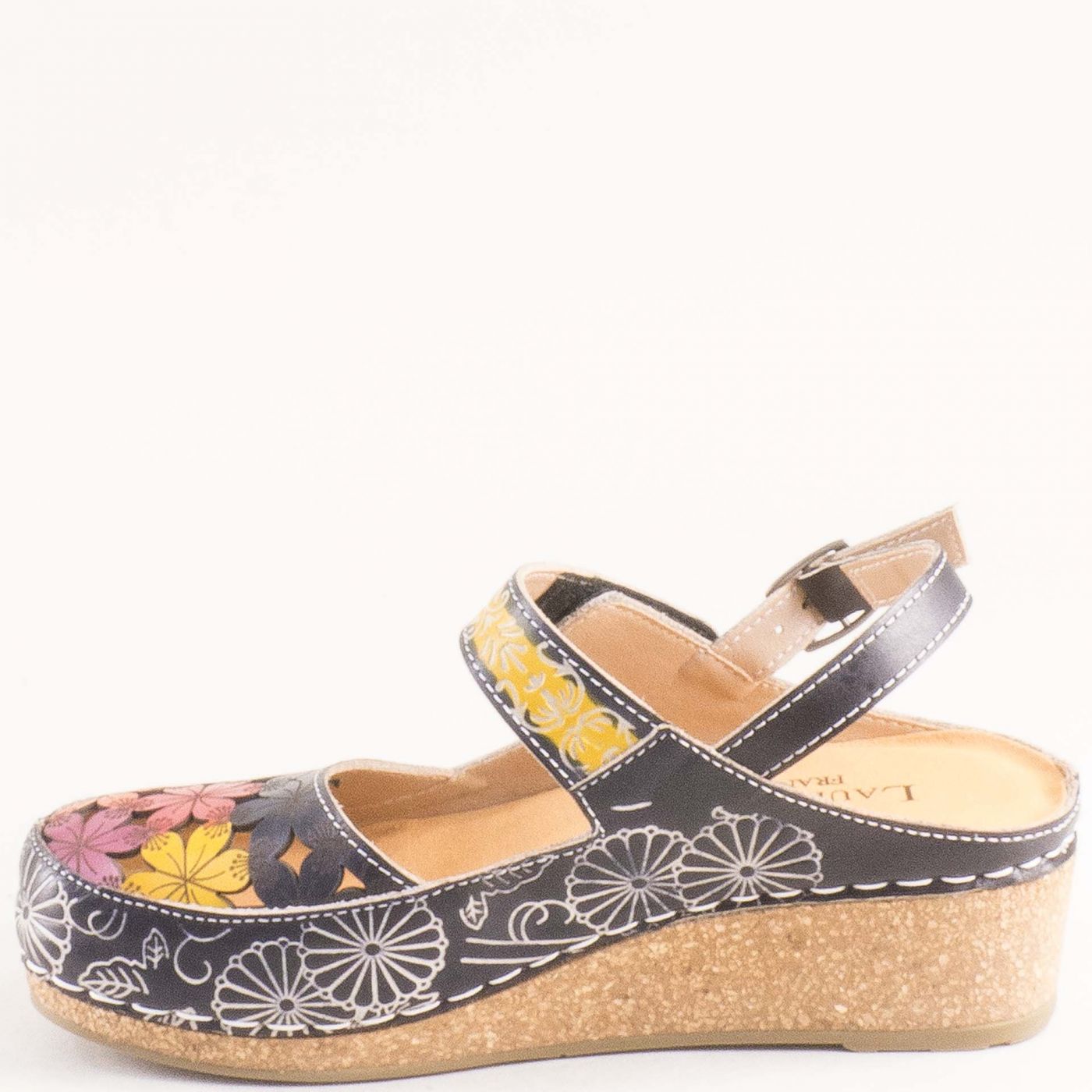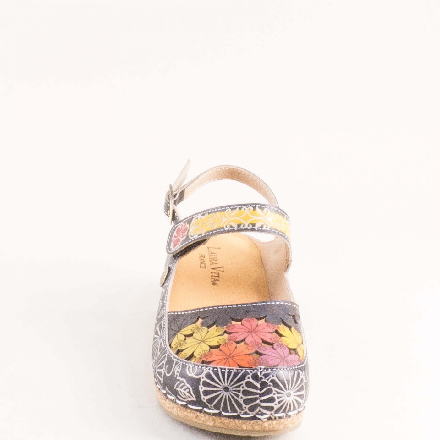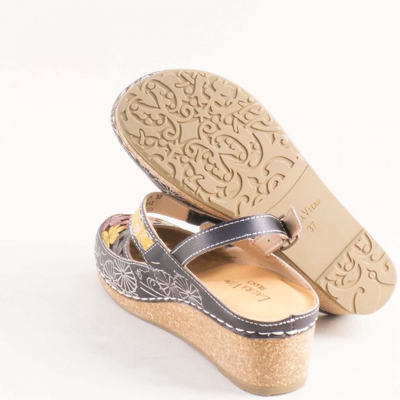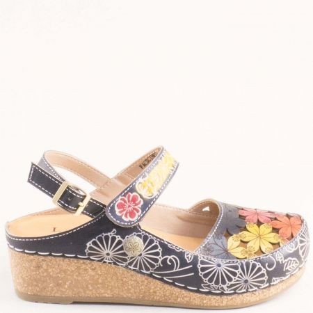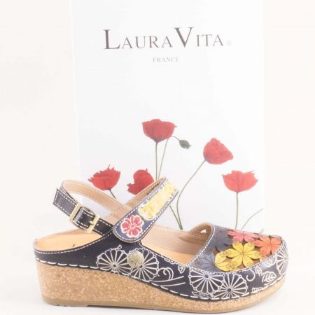 Екстравагантни дамски сандали LAURA VITA в черен цвят със закачлива флорална декорация 0004133chps