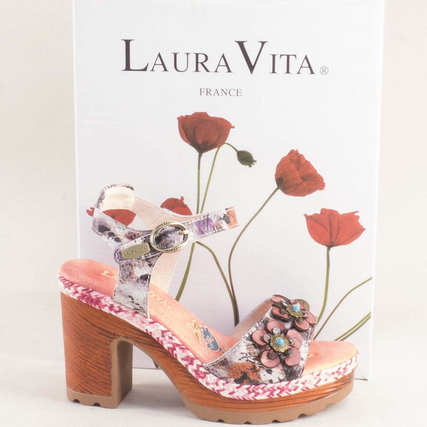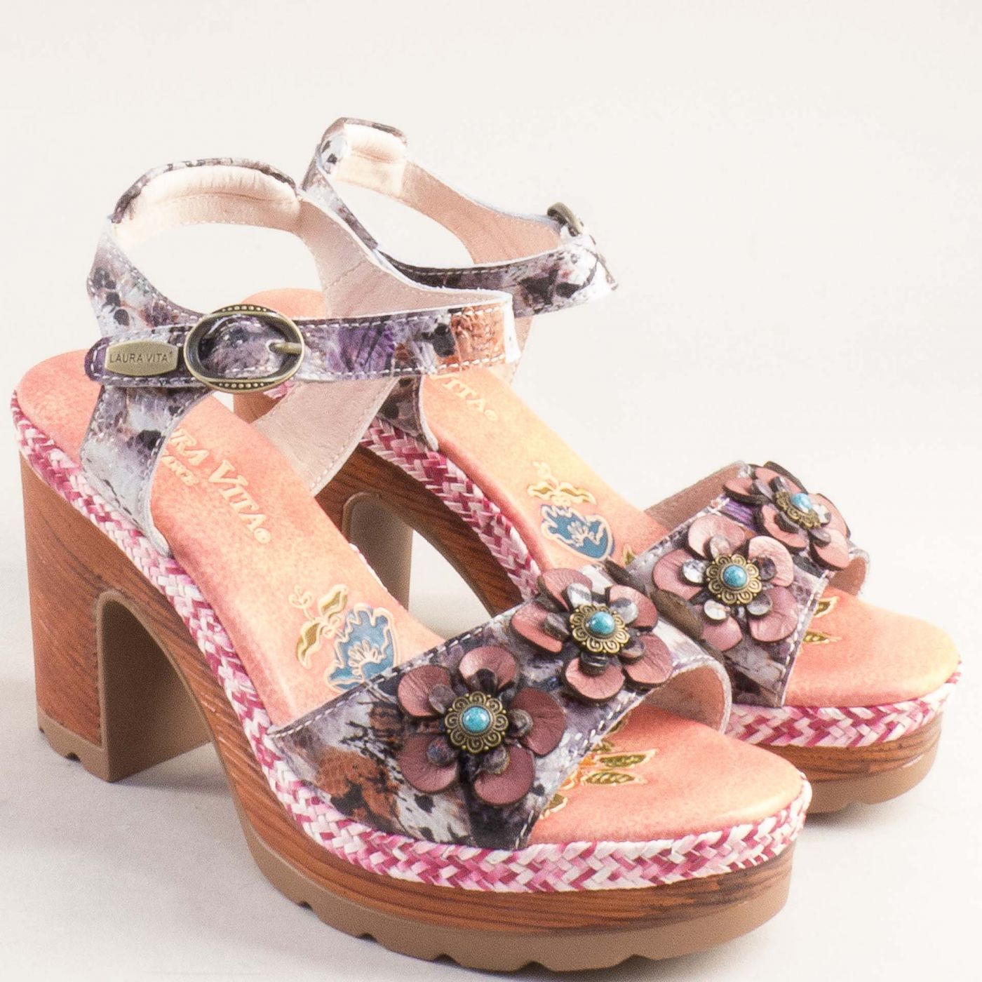 Модерни дамски сандали LAURA VITA с флорални мотиви 0008051rzps